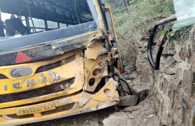 खाई के मुहाने तक पहुंची स्कूल बस, ड्राइवर की सूझबूझ से टला बड़ा हादसा, 20 बच्चे घायल