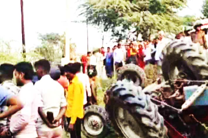 भीषण सड़क हादसा: तेज रफ्तार ट्रैक्टर अनियंत्रित होकर खंती में पलटी