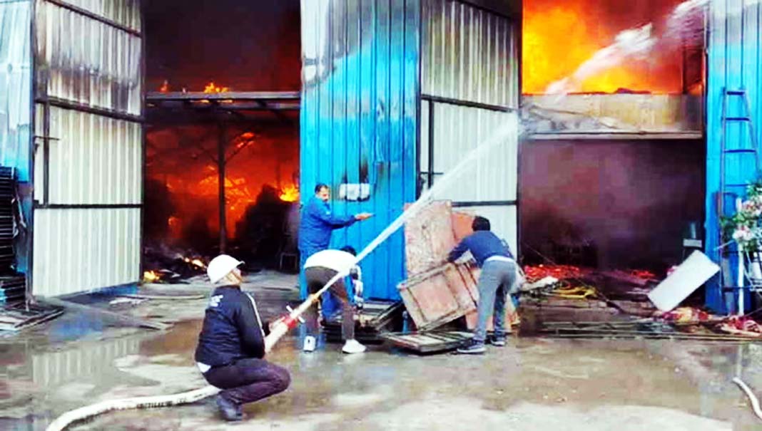 टेंट गोदाम में भीषण आग, लपटों और धुएं से मची अफरा-तफरी