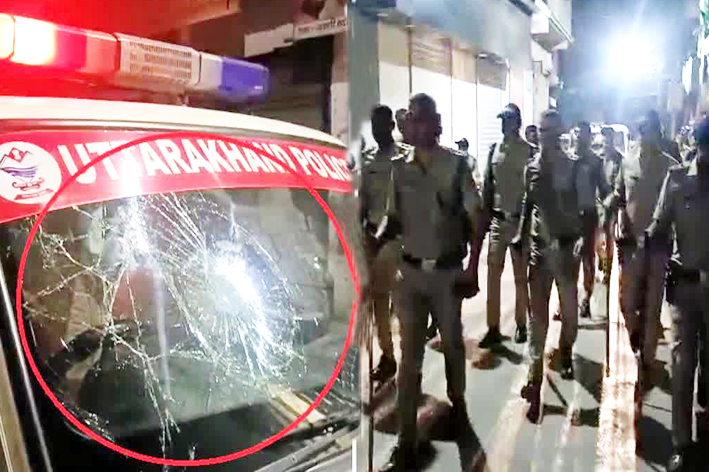 काशीपुर में उपद्रवियों ने पुलिस पर किया पथराव, गाड़ी का शीशा टूटा