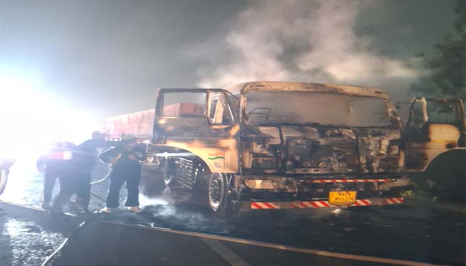 सीएफओ वंश बहादुर यादव ने बताया कि- लोहे के माल से लोडेड ट्रक में आग लगने की सूचना मिलने पर फायर यूनिट तत्काल घटनास्थल पहुंची. टीम ने पाया कि हाईवे पर खड़ा ट्रक भीषण आग की चपेट में है. ट्रक चेन्नई से हरिद्वार स्थित भेल फैक्ट्री जा रहा था. स्टेयरिंग के पास शॉर्ट सर्किट होने से आग लगी थी. फायर यूनिट ने तत्काल आग को बुझाया. इस दुर्घटना से ट्रक के आगे का हिस्सा एवं एक मोबाइल फोन को क्षति पहुंची है जबकि कोई जनहानि नहीं हुई.-वंश बहादुर यादव, सीएफओ, हरिद्वार-