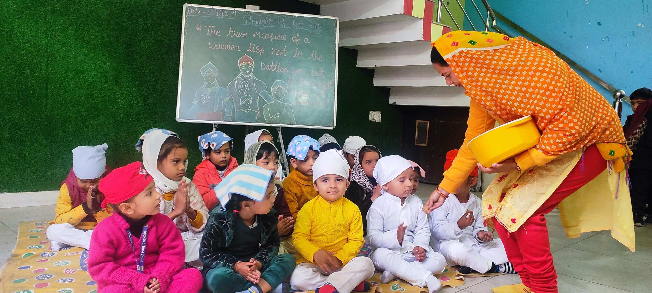 इस मौके पर विद्यालय प्रबंधक अंजिता ने बताया की गुरु गोविंद सिंह के सबसे बड़े पुत्र शहीद अजीत सिंह जिनकी उम्र मात्र 18 वर्ष में जीवन को समाज को बदलने के लिए बलिदान दिया जबकि दूसरे पुत्र शाहिद जुझार सिंह ने मात्र 14 वर्ष, तीसरे पुत्र जोरावर सिंह जी मात्र 9 वर्ष चौथे पुत्र शाहिद फतेह सिंह जिनकी उम्र मात्र 6 वर्ष की उम्र में प्राणों को त्यागना पड़ा। इस मौके पर दिशा स्कूल के बच्चों द्वारा सभी को याद करते हुए शत-शत नमन किया गया। इसके उपरान्त बच्चों के बीच लंगर (भोग, प्रसाद) वितरित किया गया।