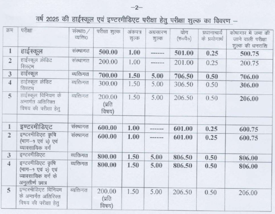 हालांकि, यदि किसी विद्यालय द्वारा हाई स्कूल और इंटरमीडिएट परीक्षा फॉर्म भरे छात्र-छात्राओं से एकत्रित परीक्षा शुल्क को कोषागार में जमा कराने की अंतिम तिथि में देरी होती है तो इस स्थिति में विद्यालय को प्रति छात्र 100 रुपये विलंब शुल्क अतिरिक्त तौर पर जमा कराना होगा।